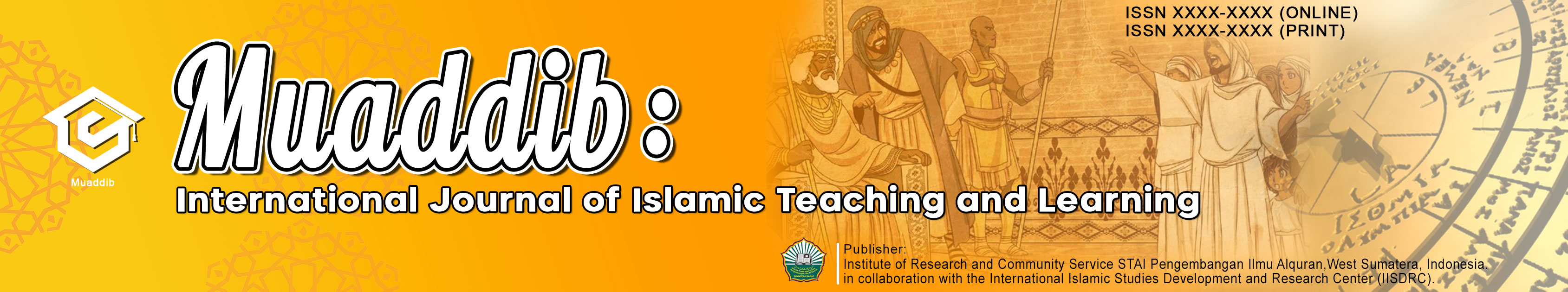 Muaddib: International Journal of Islamic Teaching and Learning is an international peer-reviewed journal published by Research and Community Services Center of STAI-PIQ Sumatera BaratIndonesia. The Journal published in April and October every year, open to authors worldwide regardless of nationality. International Journal of Islamic Teaching and Learning is an discusses and raises various issues related to Islamic education both theoretically and practically, while also raises the issue of research in Islamic education such as: technology, curriculum, media and learning model, instruments for evaluation in Islamic education, learning development for Islamic education, and action researches. Articles will be published if they were scientifically valuables, providing new knowledge and useful for the community of Islamic education. This journal is published twice a year, published in April and October. We were inviting scientists, researchers and professionals in the subject of Islamic education to submit their papers in our journal.